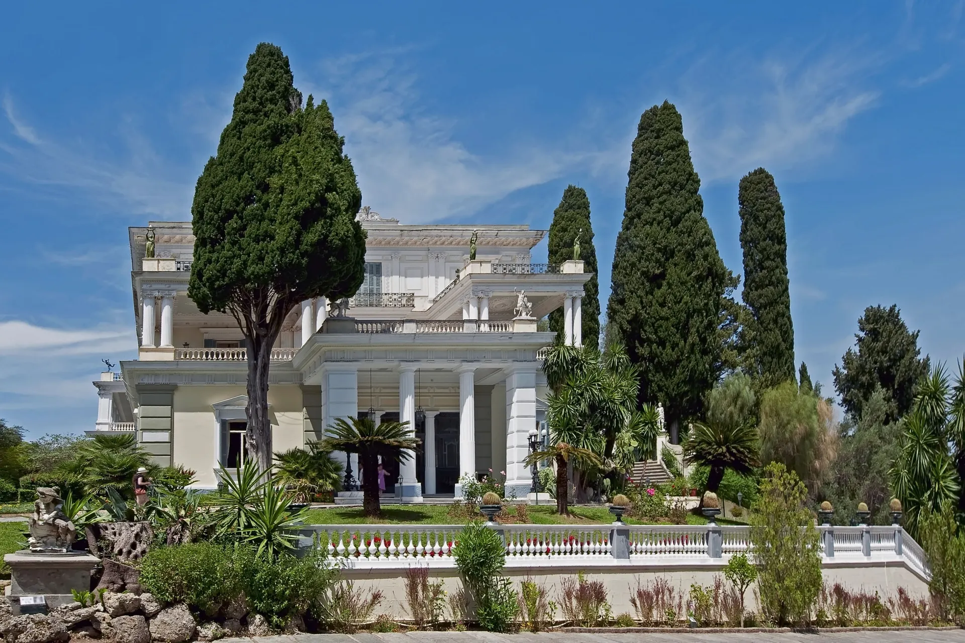 Die Kaiserin Sissi war so begeistert von Korfu, dass sie hier eine Sommerresidenz errichten ließ - das Schloss Achilleion. Allein die Gärten rund um den Palast sind einen Besuch wert - inklusive Blick auf Korfu-Stadt!
